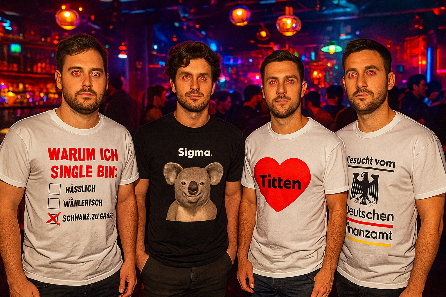 Unsere T-Shirts bestehen aus 100 % hochwertiger Baumwolle – superweich und trotzdem robust. Bei manchen besonderen Designs gibt’s auch mal ’nen Materialmix, aber das steht natürlich immer direkt auf der Produktseite!